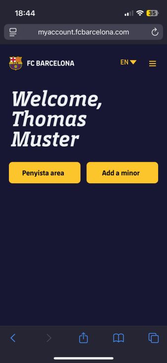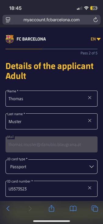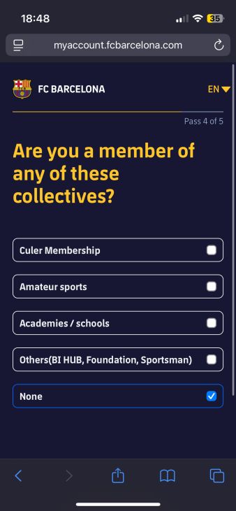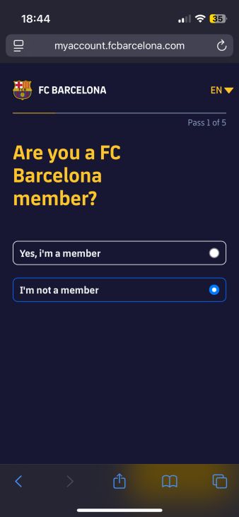 Achtung: Die Frage Are you FC Barcelona Member bezieht sich auf eine ordentliche Mitgliedschaft beim FC Barcelona, nicht auf die Mitgliedschaft in einer (unseren) Penya, somit ist die Frage in der Regel mit I’m not a member zu beantworten