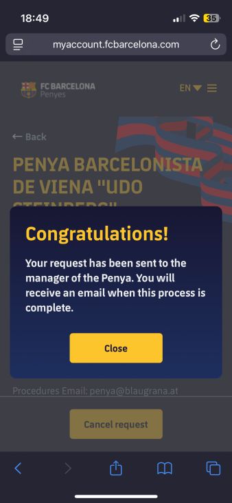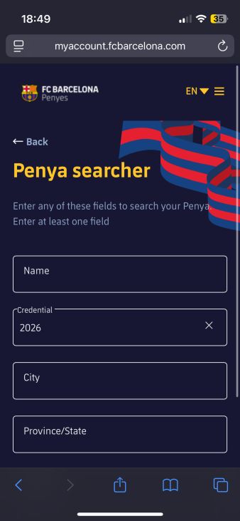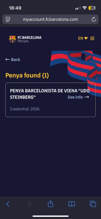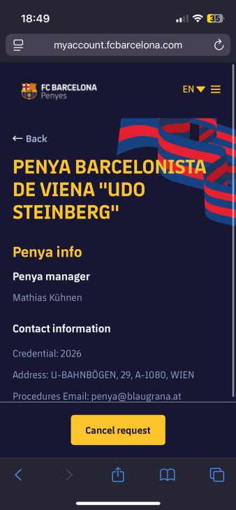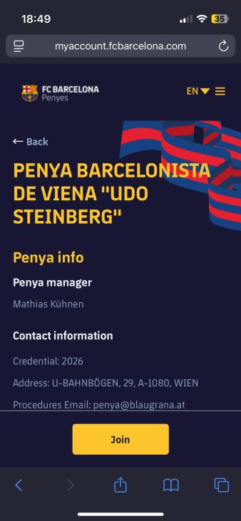 Die Registrierung im Penyes Portal ist ein, von der Anmeldung bei der Penya Barcelonista de Viena, unahängiger Vorgang.